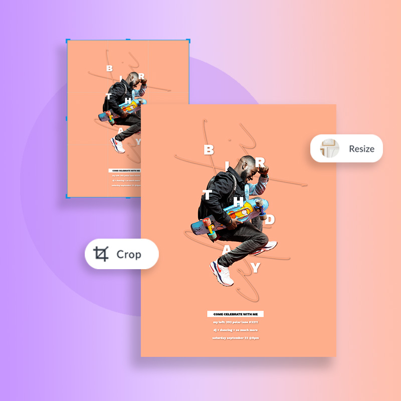 Replace the photos in the template with your own pics, or choose from millions of professional stock photos or videos in our stock library. Customize your image's size, shape, color, and more with effects and editing tools.