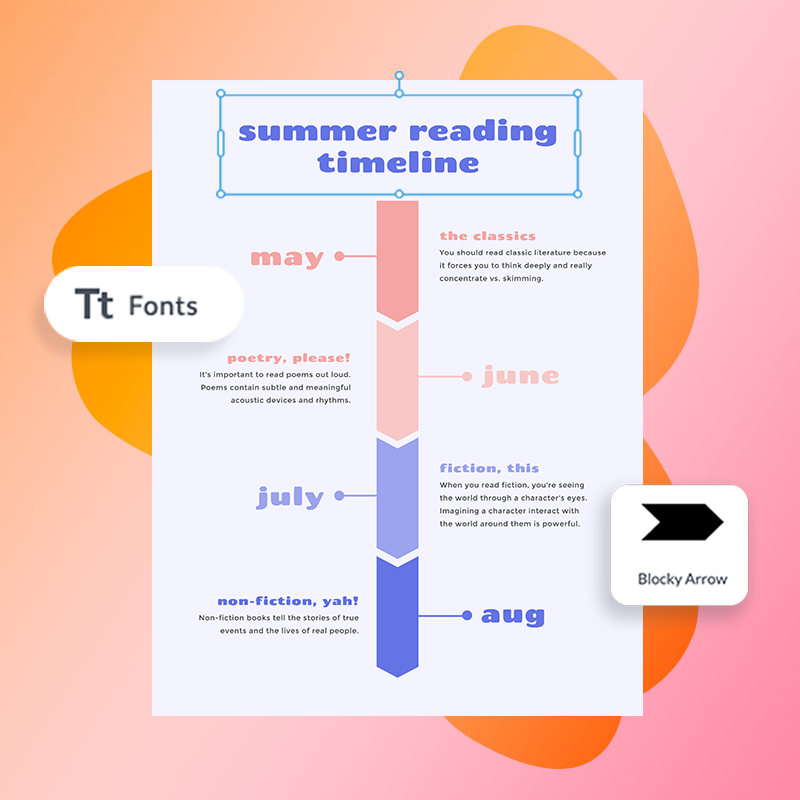 Replace the text in the template with your own words, or add more text. Choose from hundreds of beautiful fonts, and customize the text's color and size, or try effects like curve or outline.